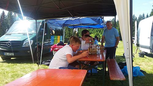 Die Siegerehrung folgte am Sonntagvormittag, die Vorsitzenden der Landesverbände überreichten die Preise an die erwartungsvollen Teilnehmer. Dann hieß es auch schon Zeltabbau und Platz aufräumen. Auch die Betreuer konnten sich für die anfallenden Aufgaben einteilen lassen, unsere Wahl fiel auf die Essensausgabe am Sonntagmittag. Dabei stellte unser Kreisverband fest, auch die Erwachsenen harmonieren dabei hervorragend.